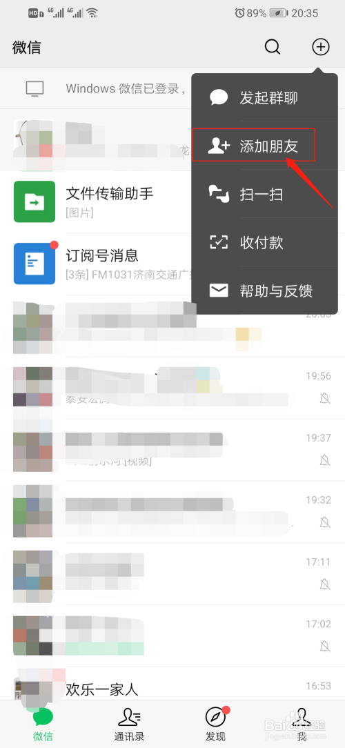 登录微信App,点击右上角【+】号,添加朋友,选择微信公众号。