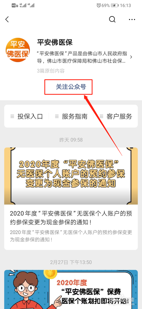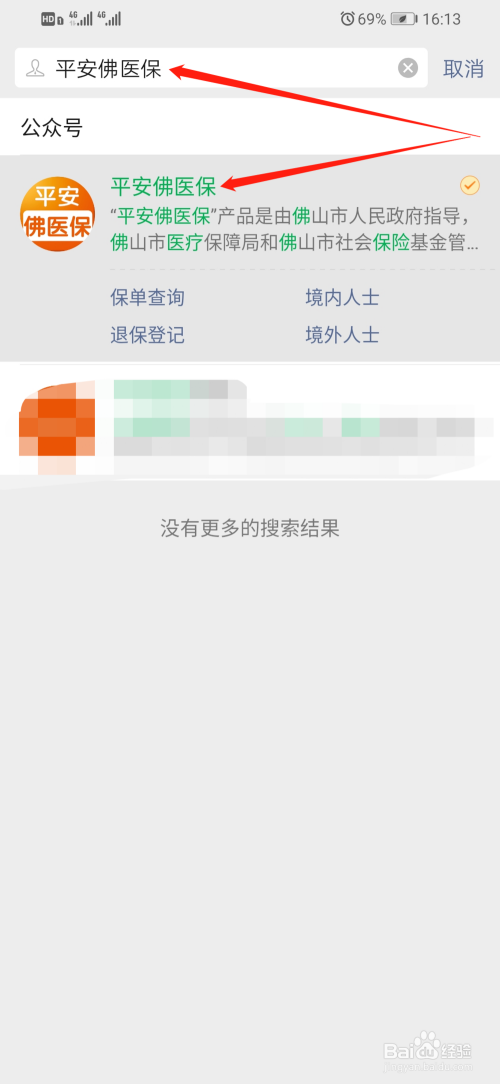 搜索【平安佛医保】,选择【平安佛医保】公众号,点击关注。