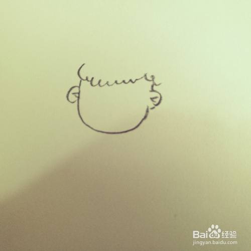 第一步,我们来画运动的女孩的脸部轮廓,以及两边的耳朵。