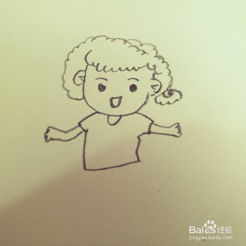 第四步,我们来画卡通女孩的脖子,以及身体和双手部分。