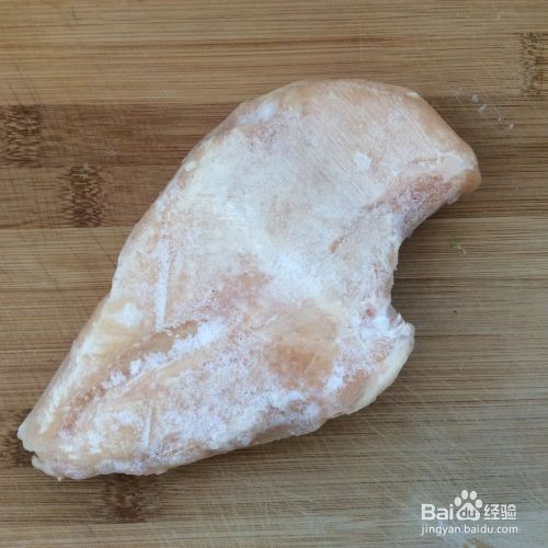 准备一块鸡胸脯肉,一般超市都有卖冷冻鸡胸的。将其洗干净备用。