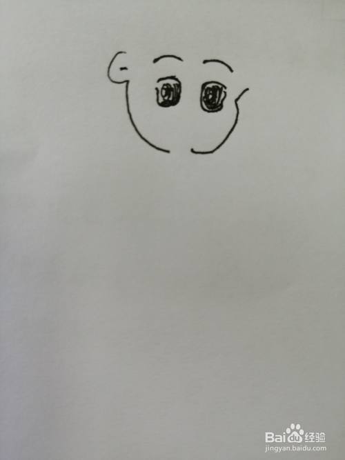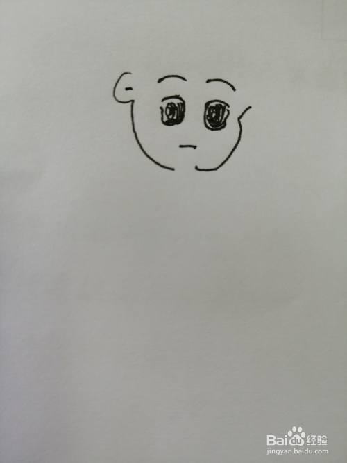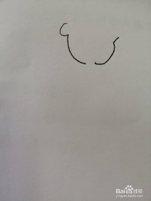 第一步,我们先画出长发小女孩的小脸和耳朵,注意脸上弯弯眉毛的画法。