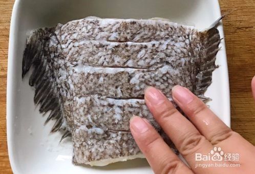 斜着切四刀,翻面也切好,这是为了腌制过程中能让鱼肉更好的接触到调料,使鱼肉更入味