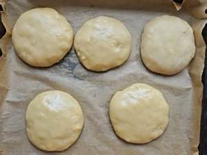 面团醒好之后分成60g一个的小面团。盖好保鲜膜再醒10分钟左右。