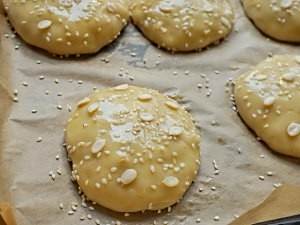 将蛋黄液均匀的刷在拖罗饼上面,均匀的撒上芝麻和瓜子仁作为装饰
