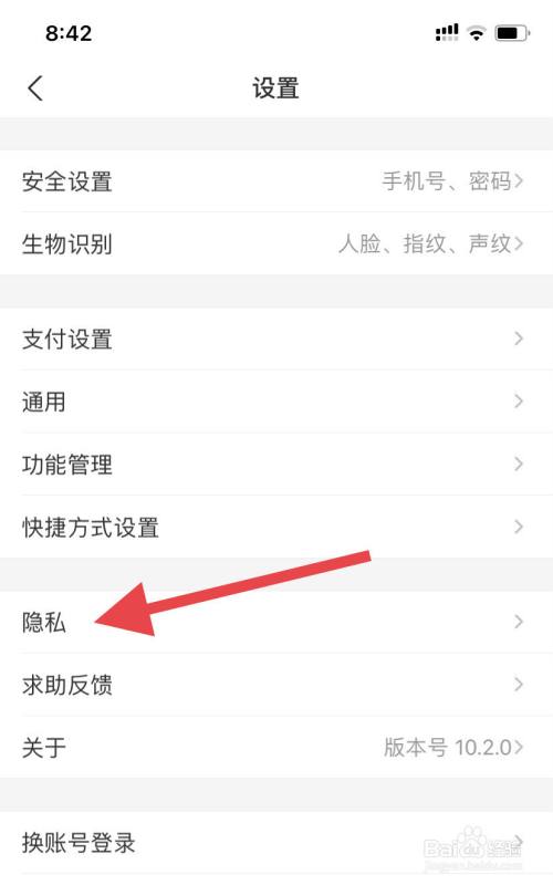 在支付宝的设置页面里,找到并点击“隐私”。