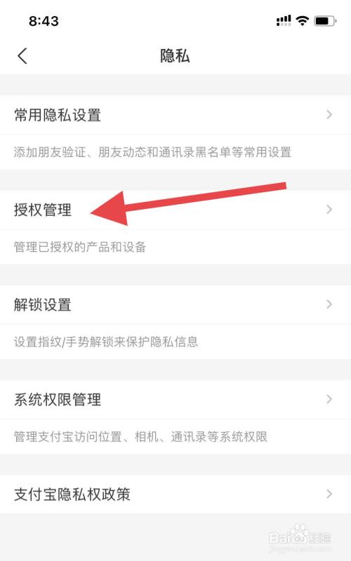 进入支付宝隐私页面里,找到“授权管理”选项。