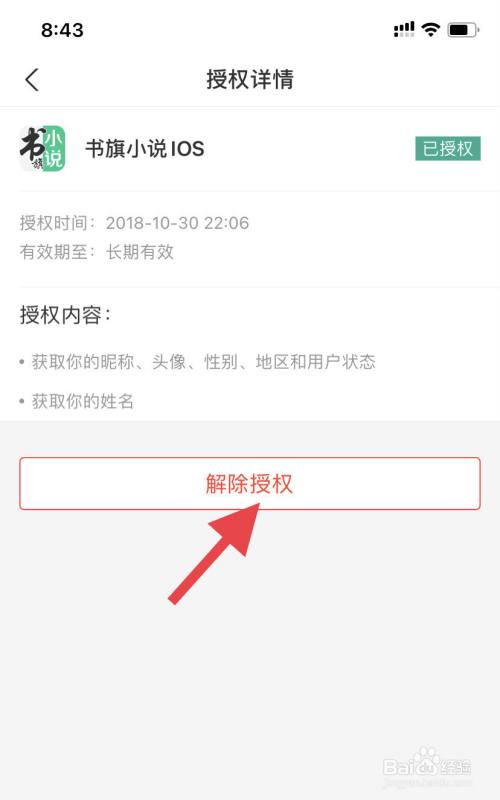 进入书旗小说授权详情页面里,点击下方的红色“解除授权”文字。