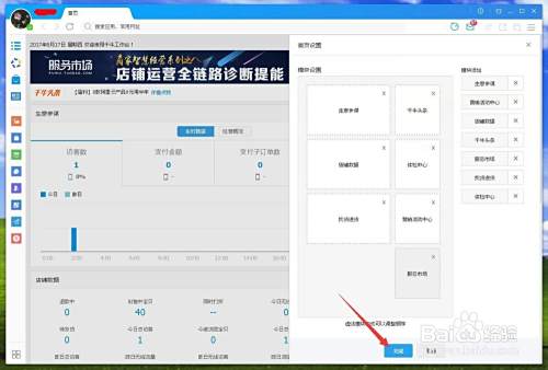 第二,进入布局设置后,可调整模块设置。如图,按住“营销活动中心”不放,拉到“服务市场”模块上,即可把顺序倒过来。
