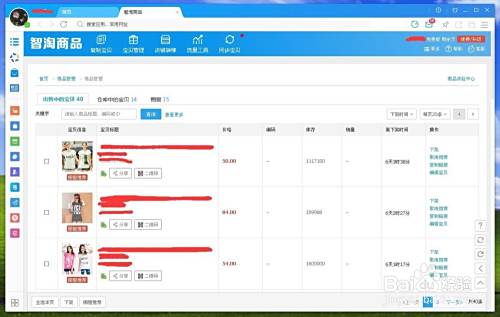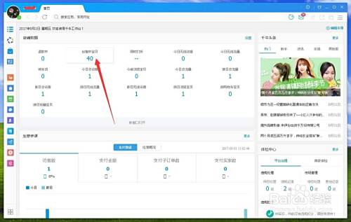 第九,中间界面上的店铺数据,如出售中的宝贝,点击它下面的数字,可以打开出售中的宝贝进行管理。