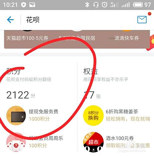 往下翻,可以看到自己目前的花呗积分,点击积分