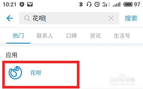 首先进入支付宝主页,在上面的搜索框搜索“花呗”