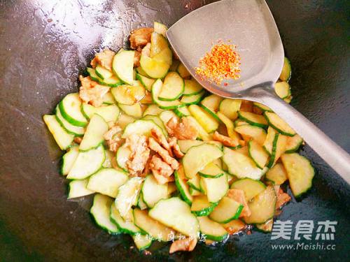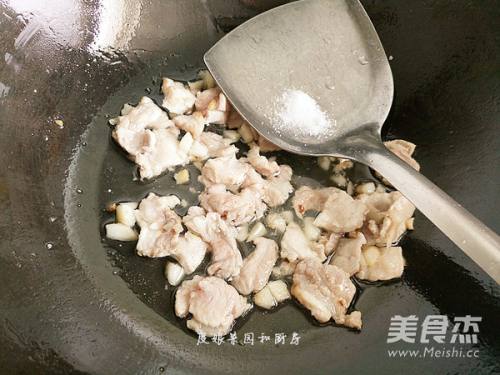 翻炒至肉丝变色,加入食盐。