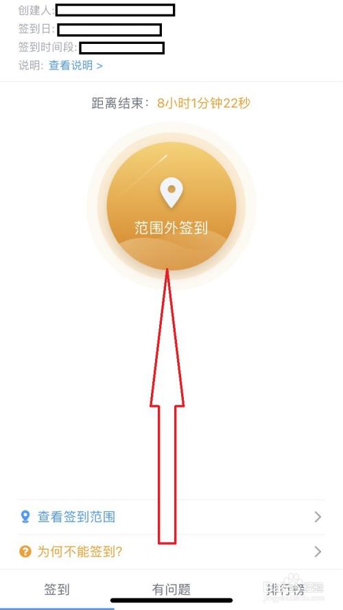 进入签到页面以后我们就可以看见每日健康上报了,在这个页面我们点击“范围外签到”。