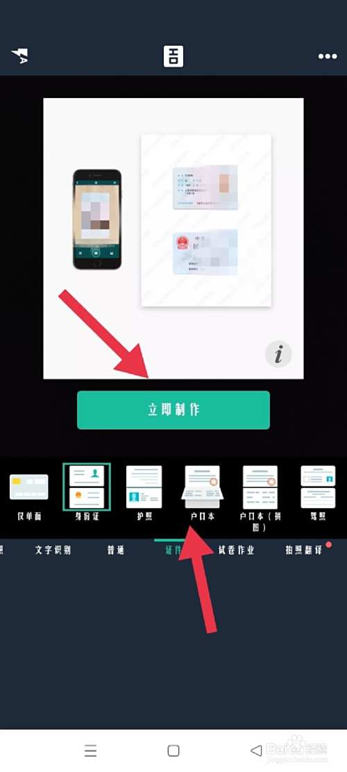 点击扫描全能王的证件扫描,选择户口本,点击开始制作,将户口本框入相机框选范围之内,按下拍摄。点击右下角的确认符号即可。