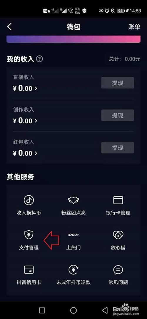 往下滑动页面,找到左侧的【支付管理】菜单。