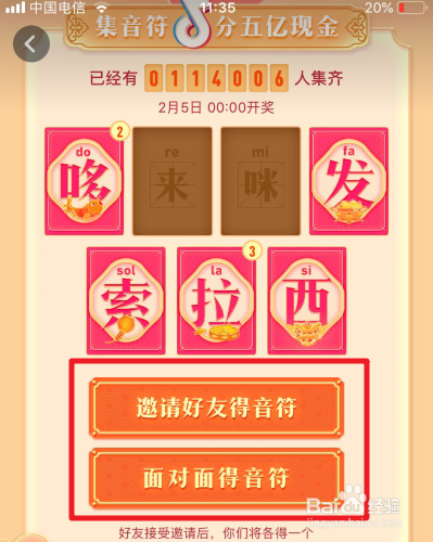 点击进入后,我们可以通过页面中的邀请好友来获得音符,有一定的概率获得到万能音符。