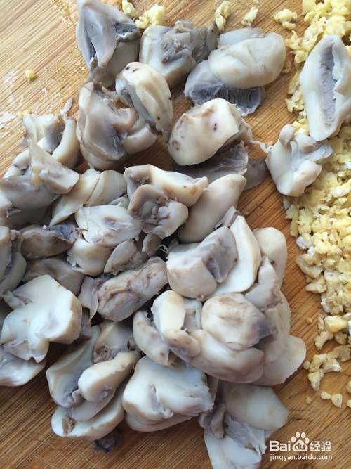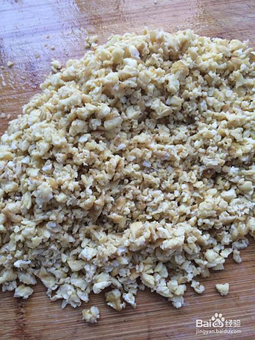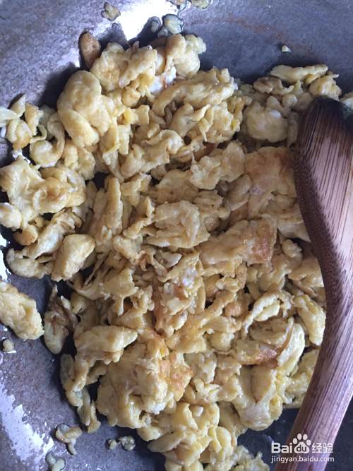 炒鸡蛋,这个都会。鸡蛋需要放凉一些切碎一些,这个忘记拍图片了。