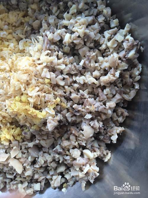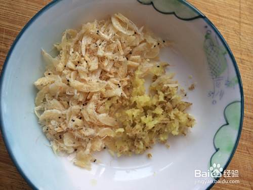鸡蛋,虾皮,姜末,草菇放到容器里面,加入盐,十三香,生抽,蚝油,草菇水,充分拌匀。