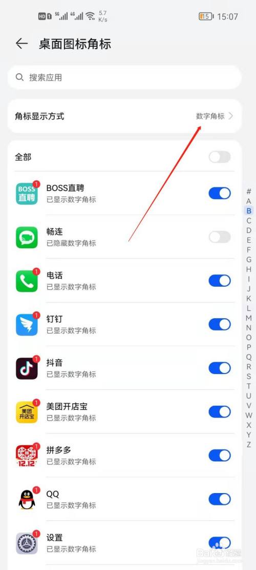 4、点击进入角标显示方式,然后选择小红点或者数字即可