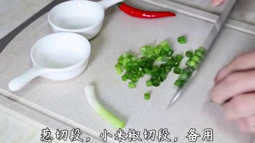 2小米椒切段,放入碗中备用。