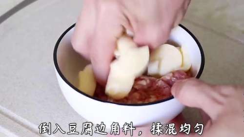 7倒入豆腐边角料,揉混均匀。