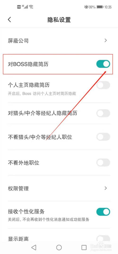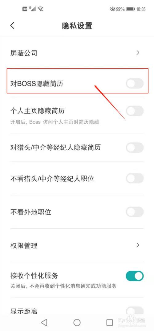 跳转后对BOSS隐藏简历右后方小圆圈变成绿色,则设置成功,如图所示。