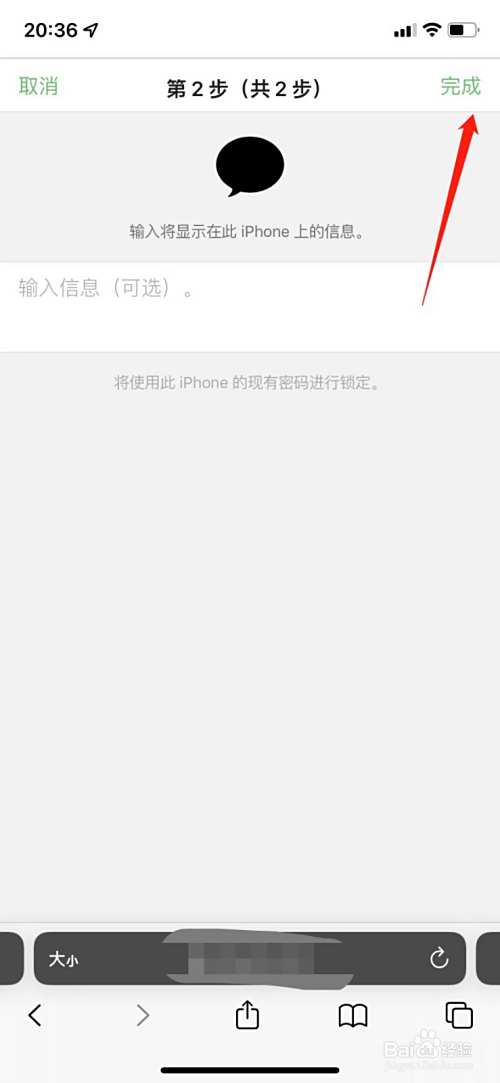 输入联系电话与留言信息后,点击完成即可将iphone锁定了。