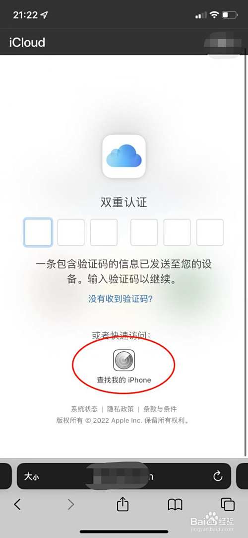 登录iCloud后,如需双重验证无法进入,可以点击下方快速进入查找。