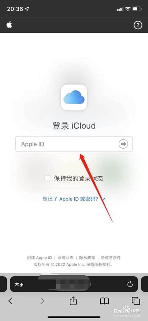 在手机上打开浏览器进入iCloud官网(最好将浏览器切换成电脑版),输入需要锁机的AppleID并登录。