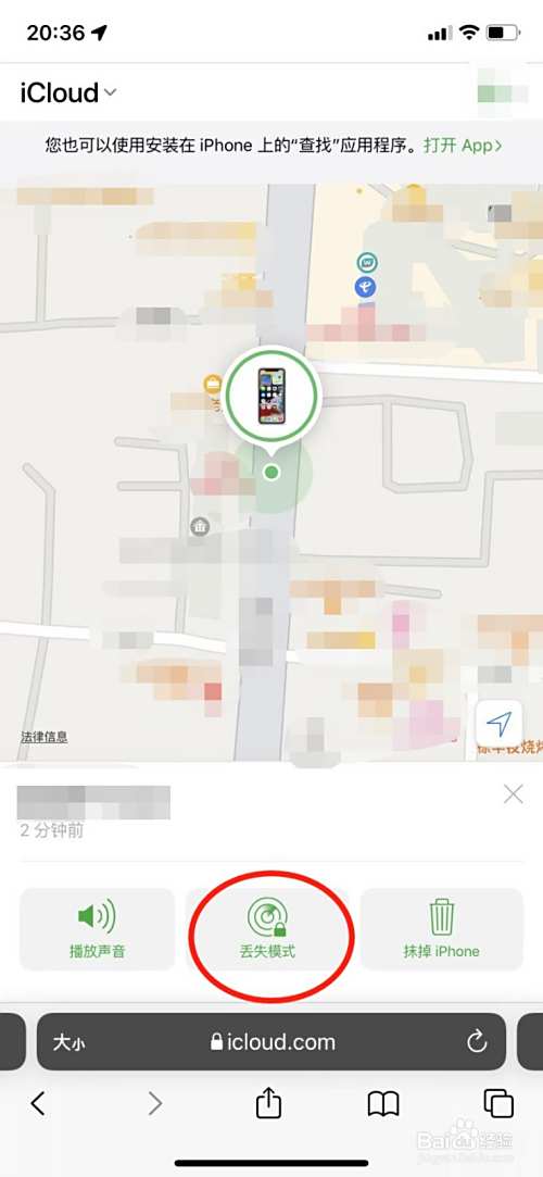 在下方菜单中点击开启丢失模式。