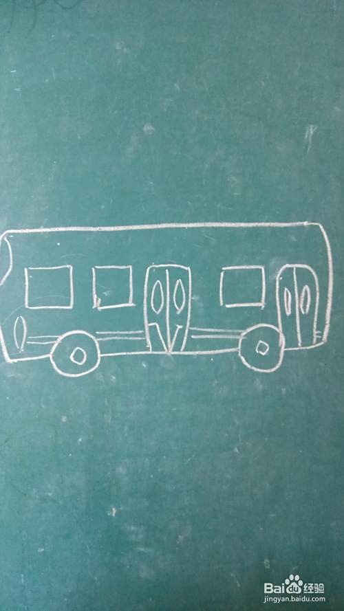 然后画出公交车的车门,两个车门,一个在中间,一个在后面。