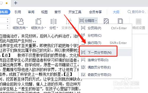 插入下一页分节符