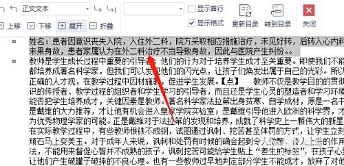 在大纲模式下,选中需要调换的页面内容。