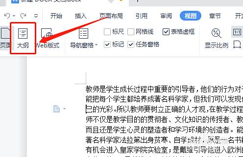 在视图选项下,点击大纲。