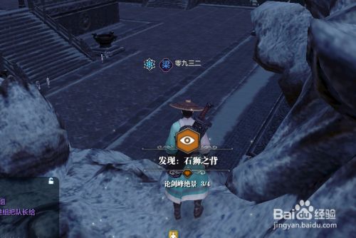 自动寻路到坐标位置,再向前方的石狮子的背上跳上去就可以了