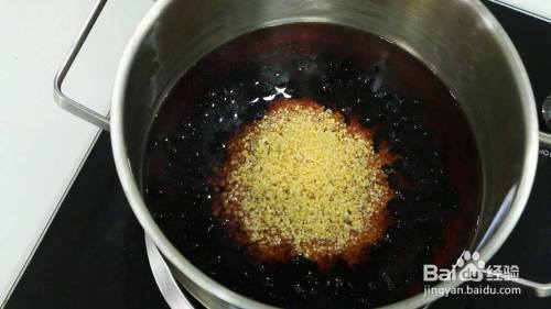 重新准备一个锅,将糯米红豆黑豆倒在一起,放入适量的清水。