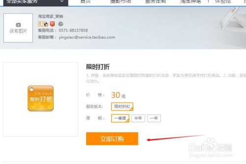 进到限时打折工具之后如果没有订购需要先开通一下,点击这个马上订购
