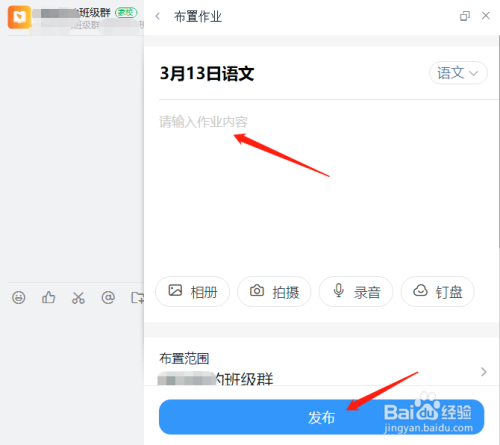 输入作业内容,点击发布即可。
