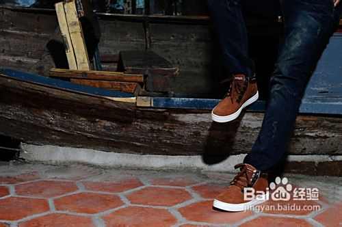 高帮鞋子搭配上直筒的牛仔裤更加有一翻时尚的元素