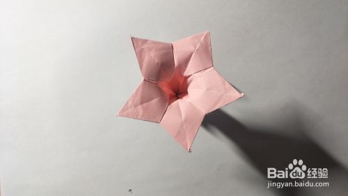 撑开上方五个角,整形后,一朵五角星花就折好了。