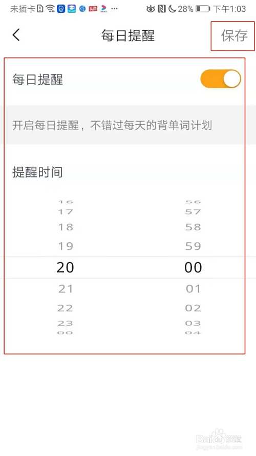 点开每日提醒按钮,设置提醒时间,再点击保存。见下图