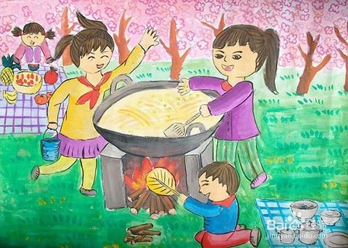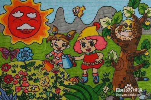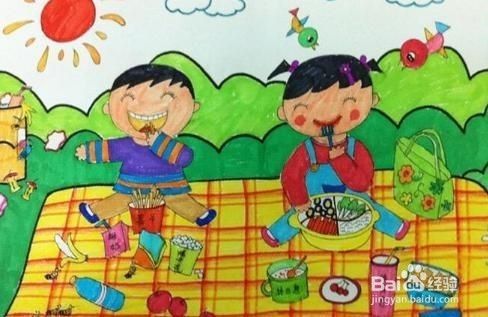 家庭出游图。将和自己爸爸妈妈出游的美好画面画下来。赏花、栽树、追蝴蝶……或者父母是否在自己去了公园?放风筝、玩游戏……全家人的脸上都挂满了笑容。