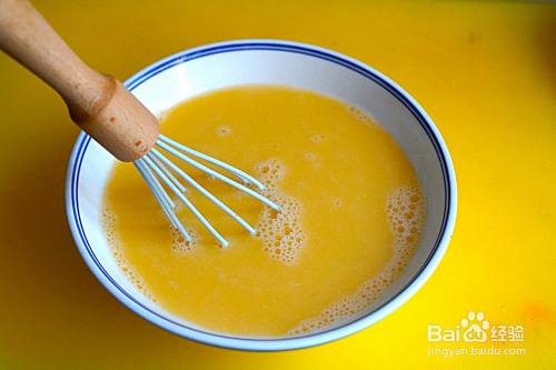 将鸡蛋打入碗中,加入少许盐和添葆羊奶粉,用手持打蛋器或筷子搅打均匀。