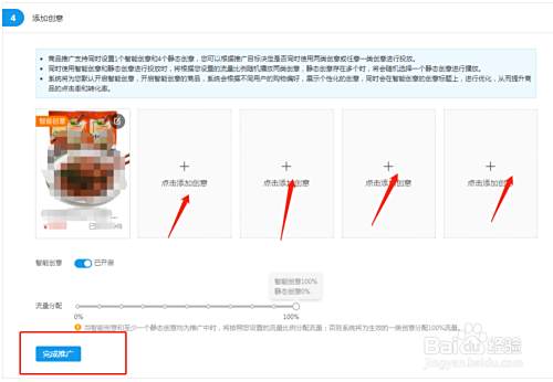 最后就是添加图片创意了,什么是图片创意,直白一点说就是主图图片。增加几张比较好看的图片,在开直通车的时候它会随机显示出来,从而吸引顾客来点击率带来成交。