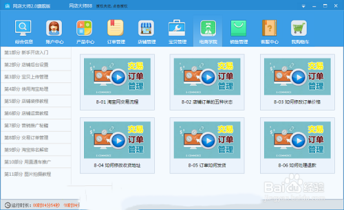 电商学院页面,有全套的新手入门、电商技巧、店铺运营等视频课程,点击后可以观看学习。