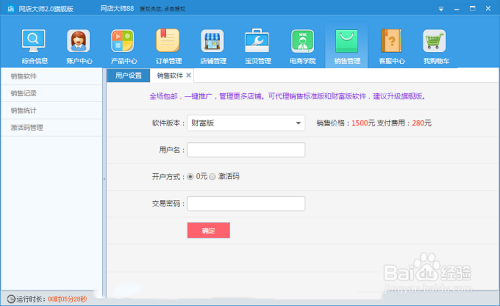 代理销售软件功能,在销售管理页面,可以为其他人开通账户账户和密码,获取利润。