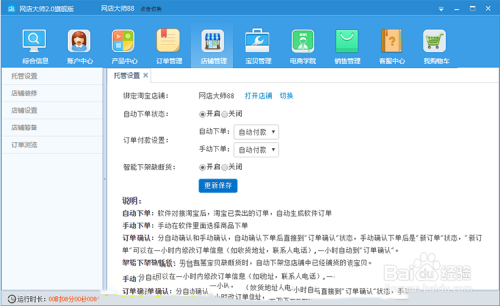 我们都知道在电商行业高速发展的今天,网购逐渐成为我们必不可少的生活方式,我们想要从中分得一杯羹,获得事业成功,不仅需要靠努力,更要创新思维、更新技术、提升效率。智能管理软件应运而生,全民创业时代,每个人都可能是未来的大师。我们接下来就来详细讲解下网店大师开店软件的基本操作方法。