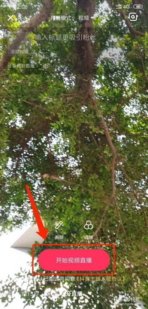 点击【开始视频直播】按扭即可在抖音中开启视频直播功能。