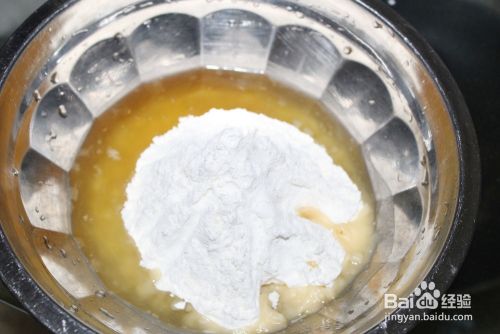 首先将125g面粉、30g淀粉、30g糖、40g食用油、50g水放入盆中备用,这是水油面的材料。